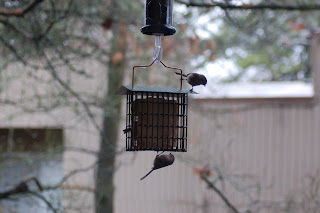 On New Year's Eve, I bought two bird feeders from the nice people at the Back Yard Bird Shop on Fremont. I hung the seed and suet feeders on my balcony and waited a long time for any visitors. Now I'm getting two varieties of chickadee, a few sparrows, the occasional nuthatch and a cheery swarm of bushtits. It would be nice if I could get better lighting, but a few of these photos aren't terrible. Updated with more photos, including a nuthatch!